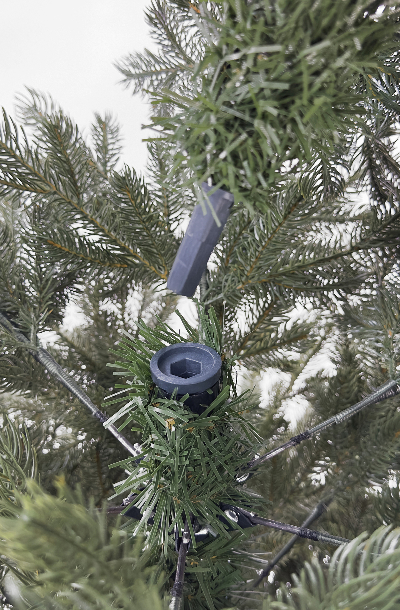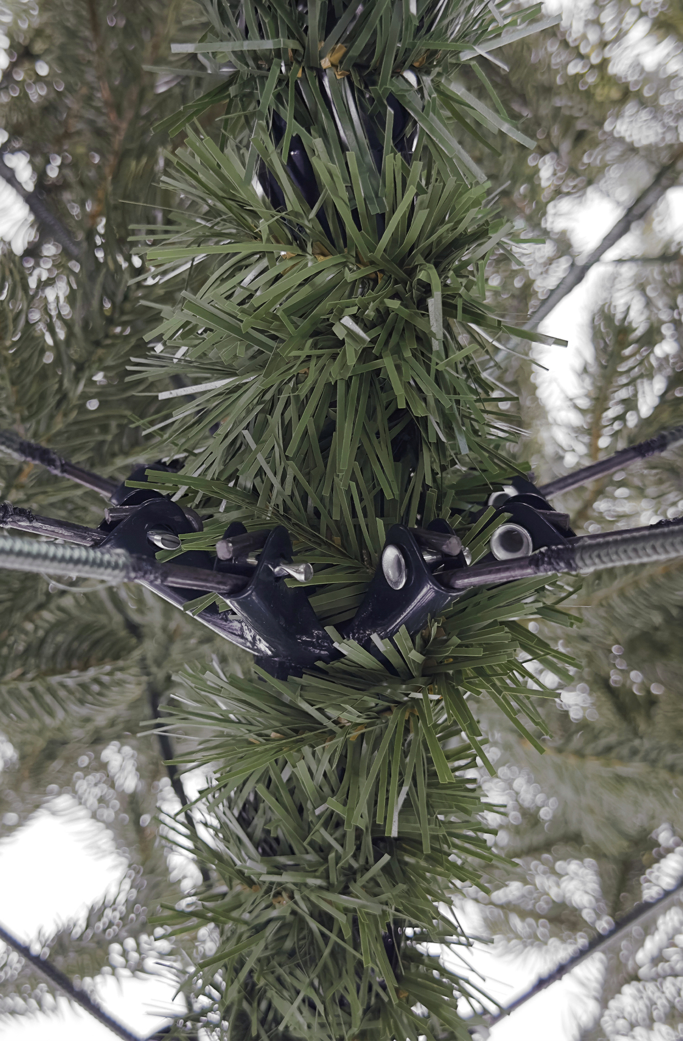 Прочность и долговечность: Ветки изготовлены из литого материала и крепятся к металлическим ответвлениям с помощью прочной нити в цвет хвои, что делает ветви максимально эстетичными